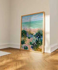 La stampa Coastal Flower Print fonde delicate tonalità di blu, viola e beige, creando un'atmosfera tranquilla ideale per soggiorni, camere da letto o spazi creativi. I delicati motivi floreali evocano la sensazione di una brezza marina, infondendo nell'ambiente toni calmi e rinfrescanti che imitano la bellezza naturale della costa.